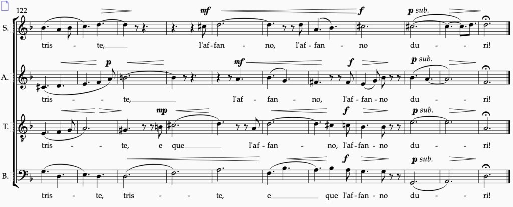 De angst bij het zien van de maan wordt uitgedrukt in strofe 3, die in feite wordt gekenmerkt door een bijna tegenstrijdige structuur, aangezien in dezelfde zin het ijverige gebaar van de dichter (zoals gesuggereerd door het werkwoord «venia» in de onvoltooid verleden tijd) geplaatst wordt naast de “angst” die zijn ziel kwelde: “Ik kwam vol angst om naar je te kijken.”