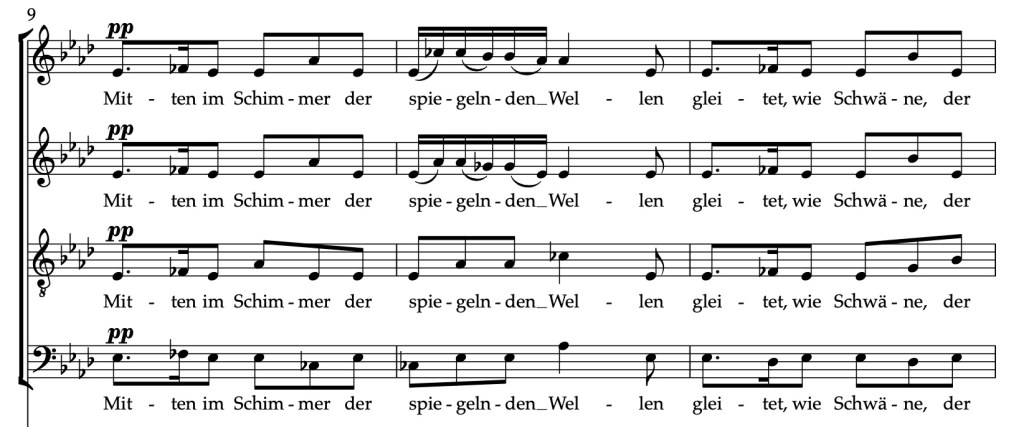 De tekst beschrijft een scène op het water vanuit het perspectief van de verteller die in een boot zit, en duikt in de reflecties van de verteller op het verstrijken van de tijd. De pianobegeleiding van het lied herschept de textuur van de glinsterende golven (der Freude sanftschimmernden Wellen) die in de derde regel van het gedicht worden genoemd en de ritmische stijl in de 6/8-maat doet denken aan een barcarole. Harmonisch gezien volgt het lied als geheel en binnen elke strofe een beweging van de mineurmodus naar de majeurmodus.